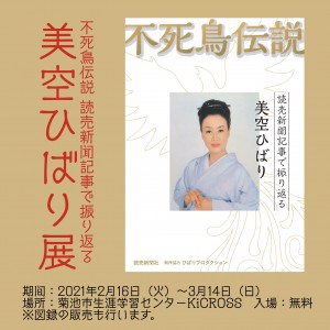 2021年2月16日(火)~3月14日(日) 【不死鳥伝説 読売新聞記事で振り返る美空ひばり展】が熊本県菊池市生涯学習センターKiCROSSにて開催されます。