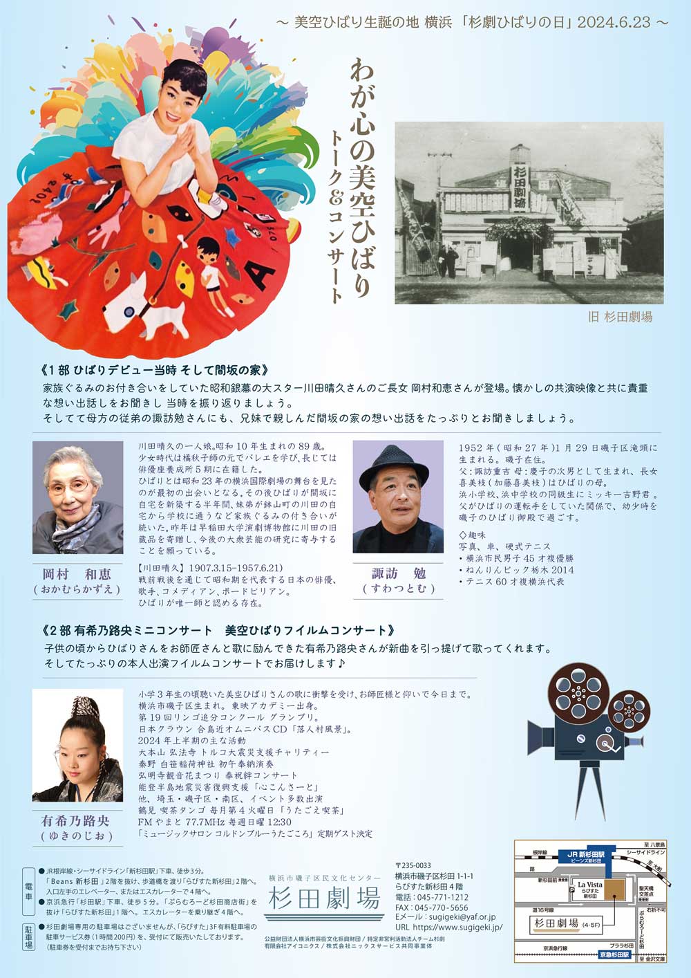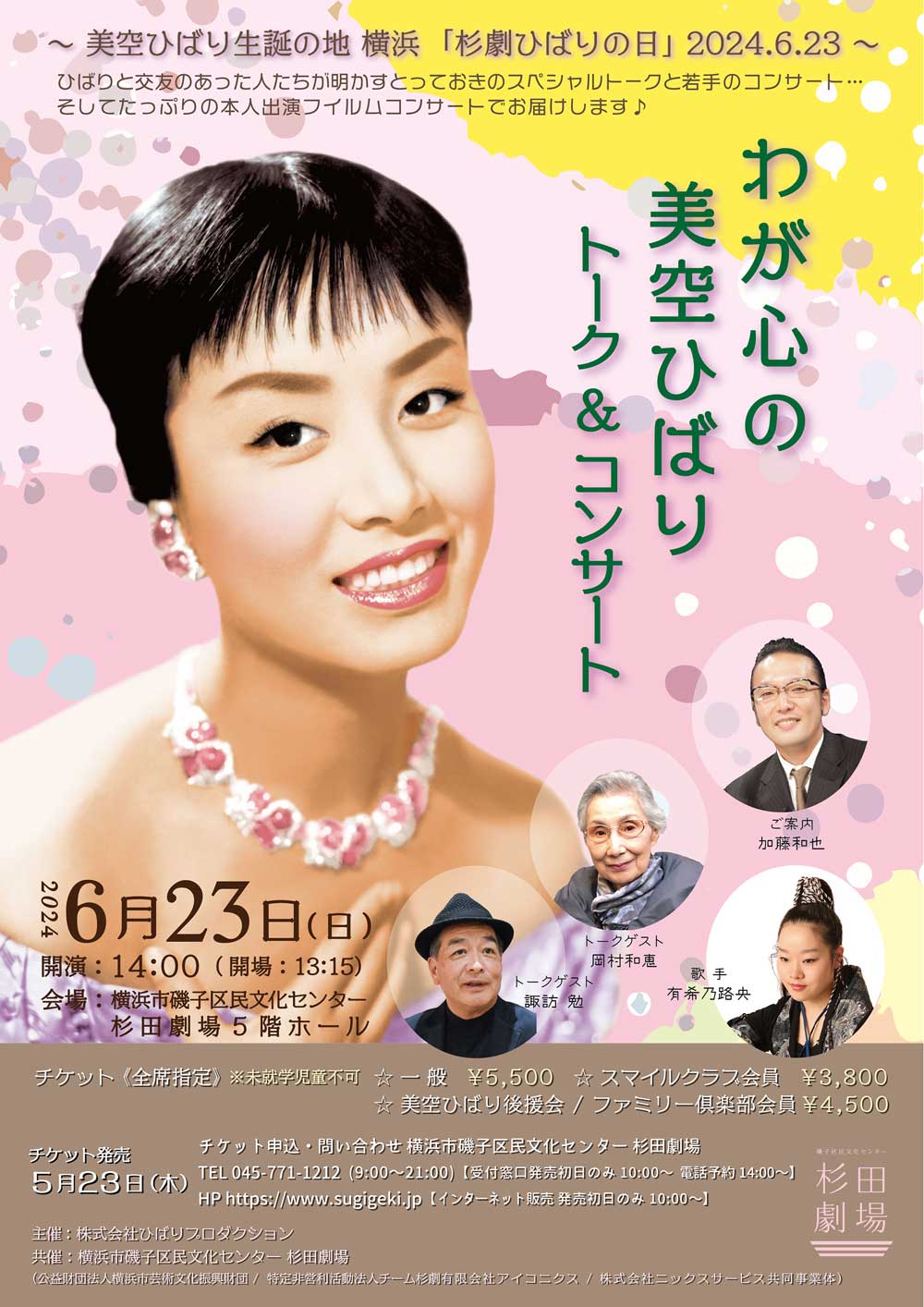 美空ひばり生誕の地 横浜「杉劇ひばりの日」2024.6.23〜わが心の美空ひばり トーク&コンサート〜のご案内